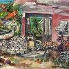 I Sells Conch Shells, Harbor Island the Bahamas - signed original painting on canvas, framed.